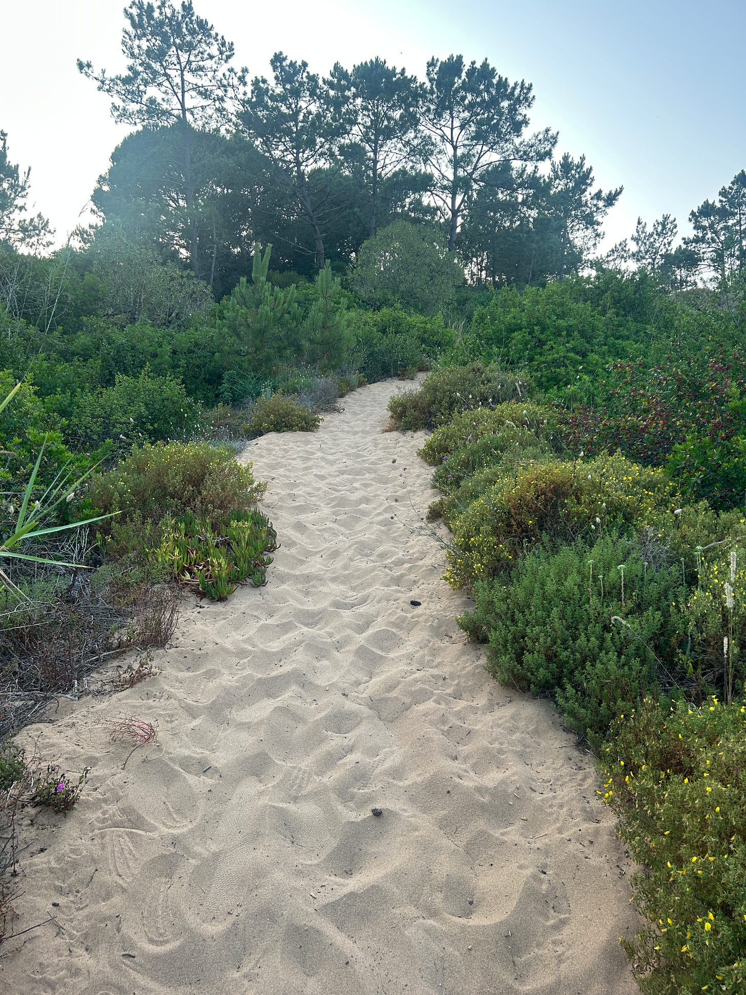 At 8:15 pm, with sunset at 9:05, I threw on my Birkenstocks and left. I assumed I could drive most of the way, but when I reached the turnoff, the signs said “No Cars.” So I parked, looked at the map, and realized it was 1.2 miles uphill… then shortly after I started walking, I realized it was a giant sand dune. In fact, I was on the other side of the largest sand dune in Western Europe!